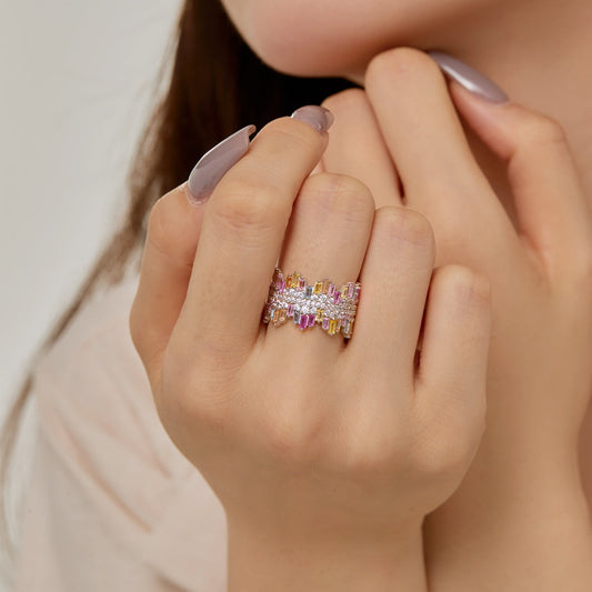 [Lumi Jewels]Ornate Colorful Radiant Cut Daily Ring